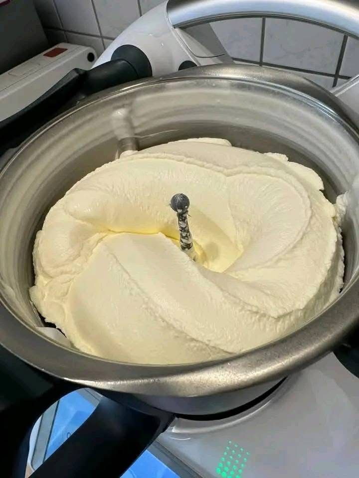 Mixer 1 min / vitesse 6, puis insérer le fouet et fouetter 30 sec / vitesse 4 pour obtenir une texture bien onctueuse.