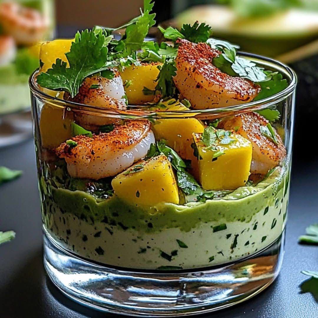 Verrine de crevettes épicées, mangue fraîche et crème d’avocat : une explosion de fraîcheur et d’exotisme
